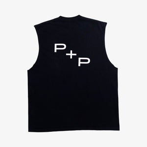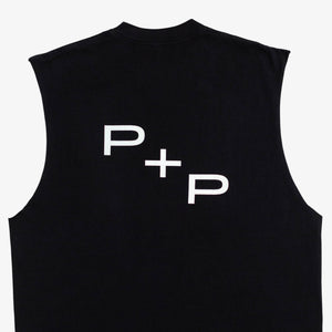 ‘Monogram’ Back No Sleeve Shirt (Off Black)